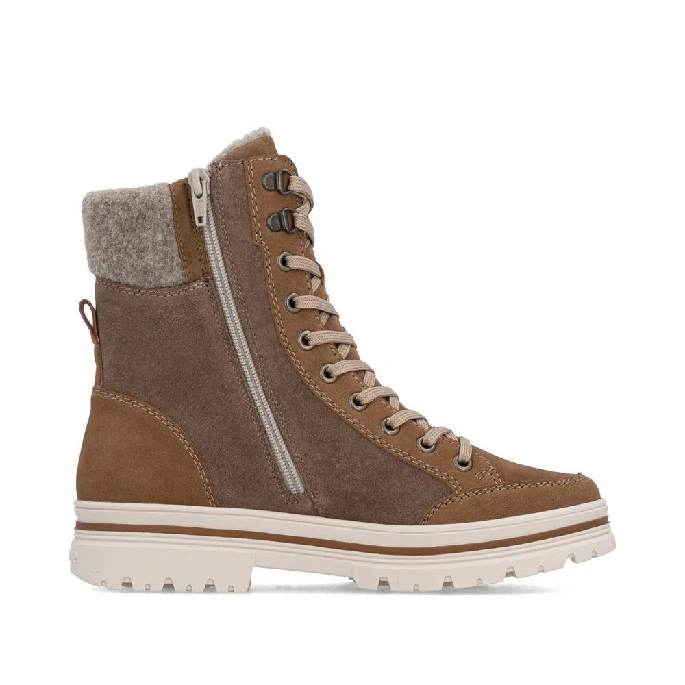 They will warm your feet and your heart! These black remonte lace-up boots made of smooth leather will make the hearts of fashion-conscious women beat faster. The lacing complements the zipper and thus guarantees optimal support and perfect fit. The decorative buckle on the side harmoniously rounds off the look of the shoe. With the grippy and flexible sole, sure-footed walking is a matter of course. The comfort width offers the feet more space in the shoe. The water-repellent surface of the shoes offers optimal weather protection and the thermal insole features protection against the cold. Cozy and very warm virgin wool keeps the feet warm all day long. True to the motto comfort meets style!