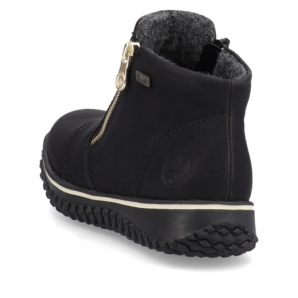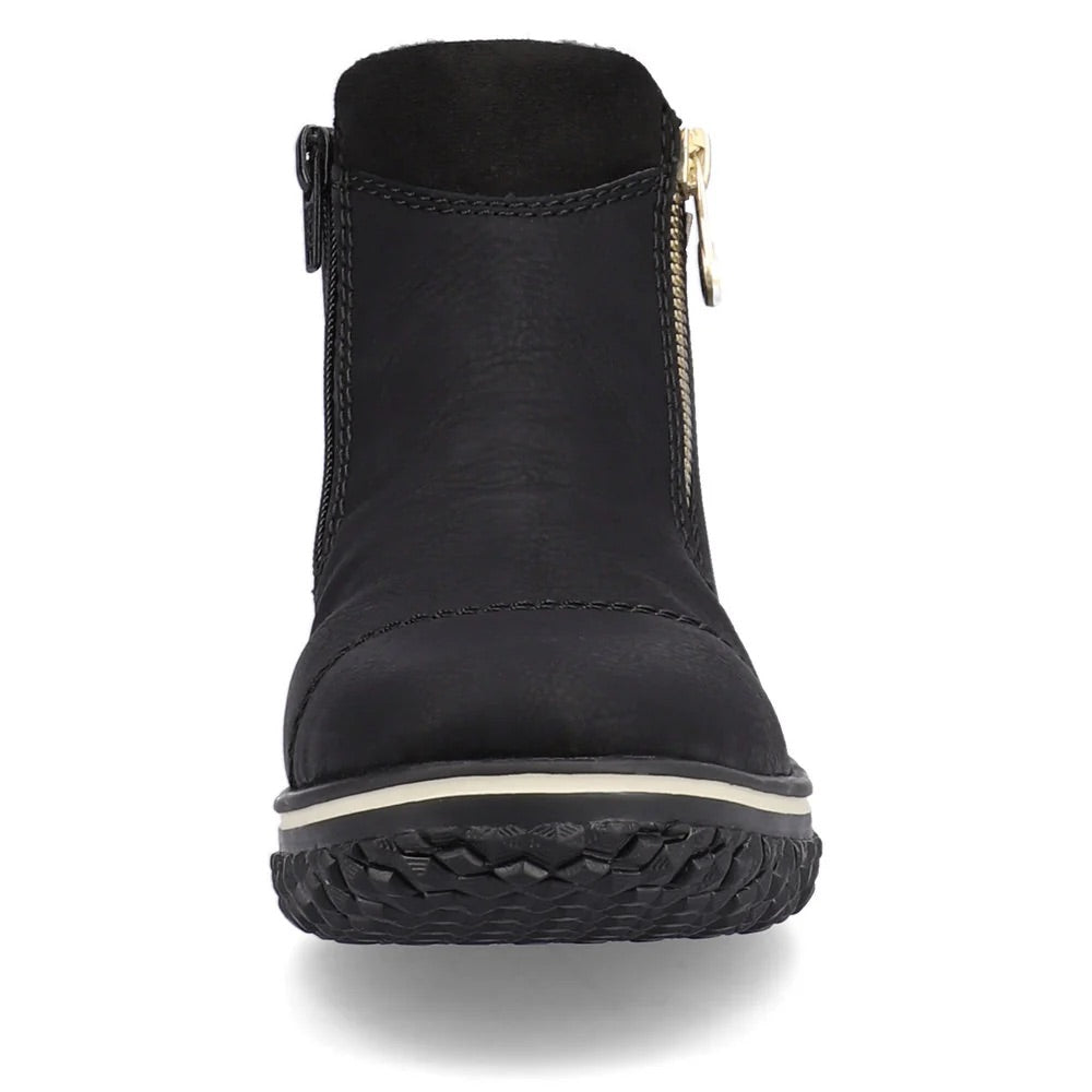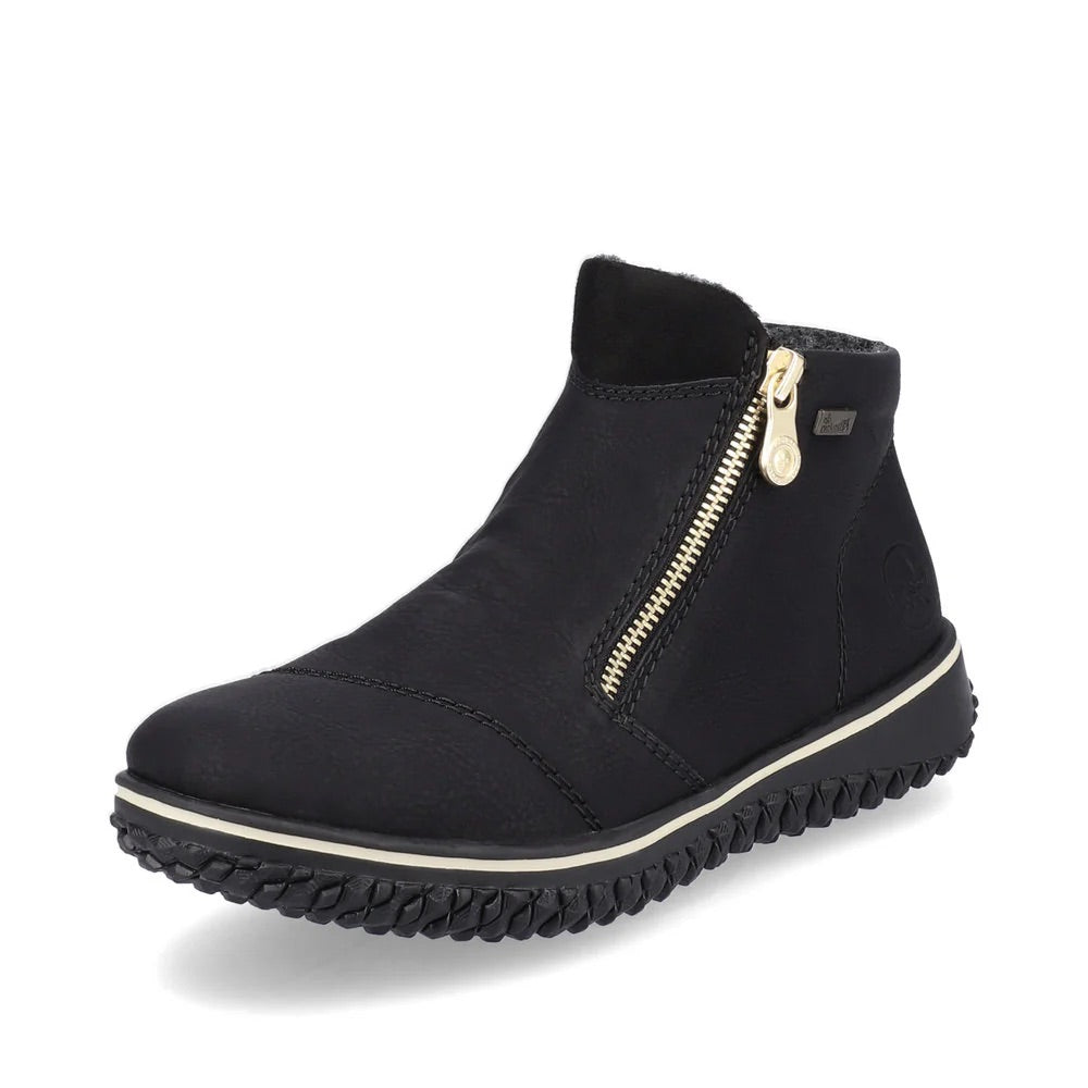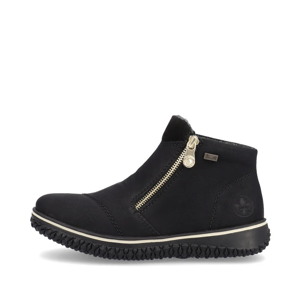 All-time favourite! You'll be cool and casual on the move in these black Rieker ankle boots. The zipper makes the shoe easy to put on and take off. The sole is grippy and ensures good traction at all times. Thanks to the water-repellent RiekerTEX membrane, the feet stay dry even on wet and cold days. Fashionable wellness feeling in Rieker style!