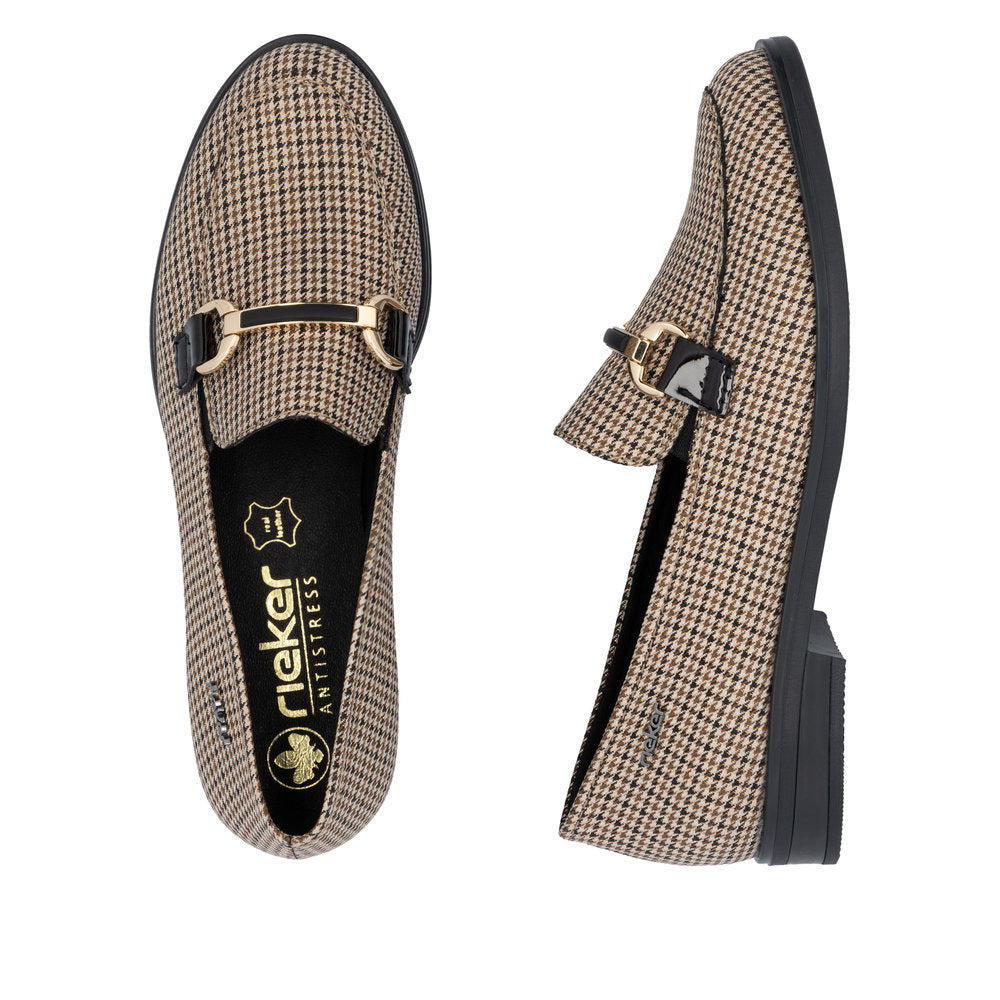 Fashion meets function. These beige Rieker loafers combine cool design with the best comfort and high functionality. The elastic bands allow for easy donning. The fashionable check pattern is a real eye-catcher. Their grippy sole prevents unwanted slipping and the cover sole is extra soft. 100% favourite shoe potential!