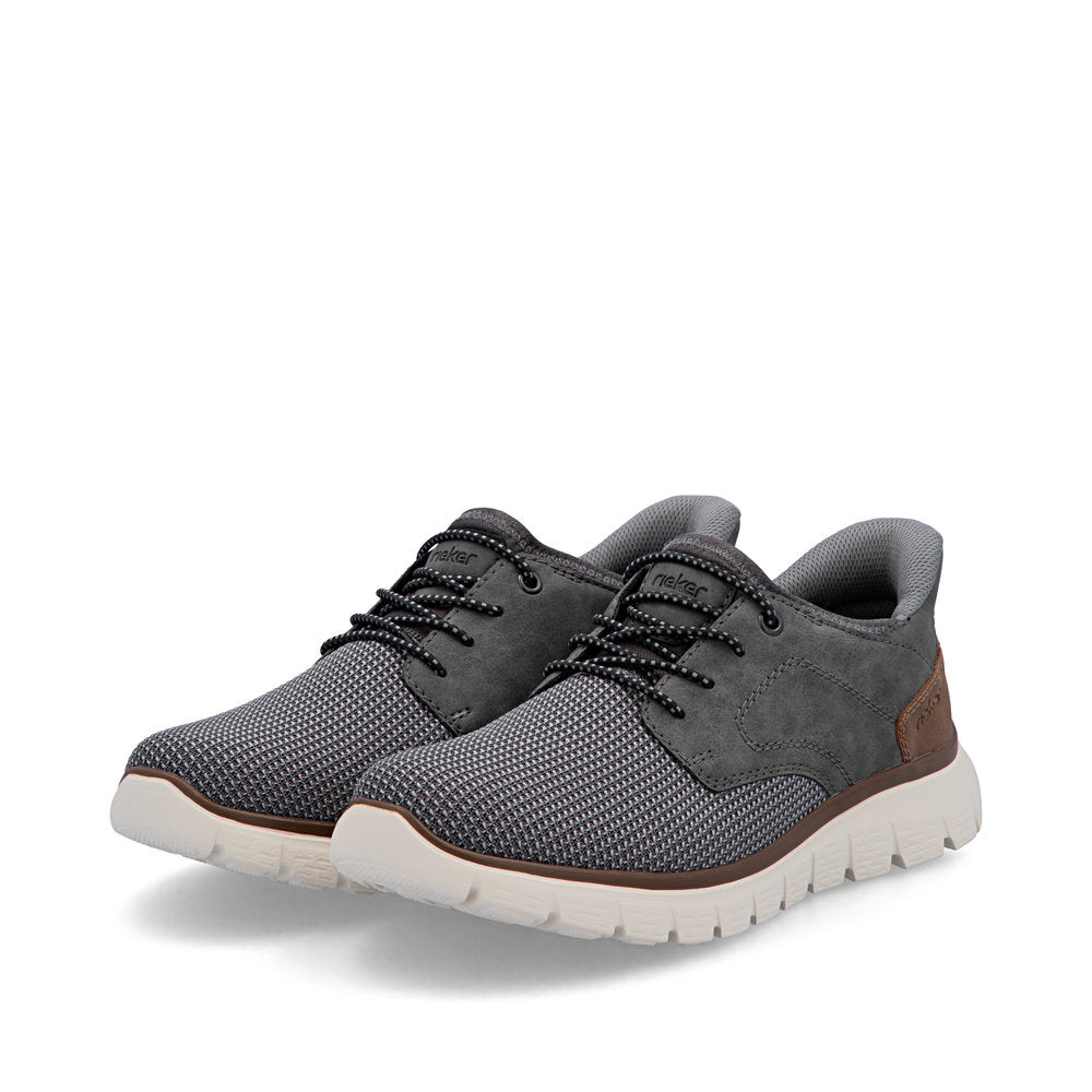 Ready2GO! Go for maximum comfort and ultimate style with these grey brown Rieker shoes. An elastic band is a great simplification especially when putting on and taking off the shoe. The sole is both shock-absorbing and ultra light, offering a double sense of well-being at every step. The cover sole is also extra soft. The comfort width offers the feet more space in the shoe. Thanks to the Ready2GO slip-on feature, there's no more bending down and no more creases on the heel part! Just slip in and go!