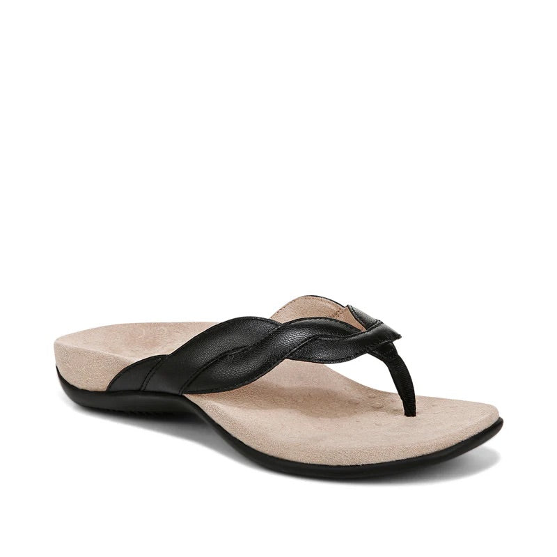 A fresh take on our iconic Bella, featuring a braided leather upper for a modern twist. The EVA cushioned insole with supportive contours ensures a smooth step, making this toe-post sandal the perfect companion for all-day comfort, whether you're at the beach or strolling through town. Engineered with Vionic’s exclusive technology, it's designed to promote balance and well-being with every step.